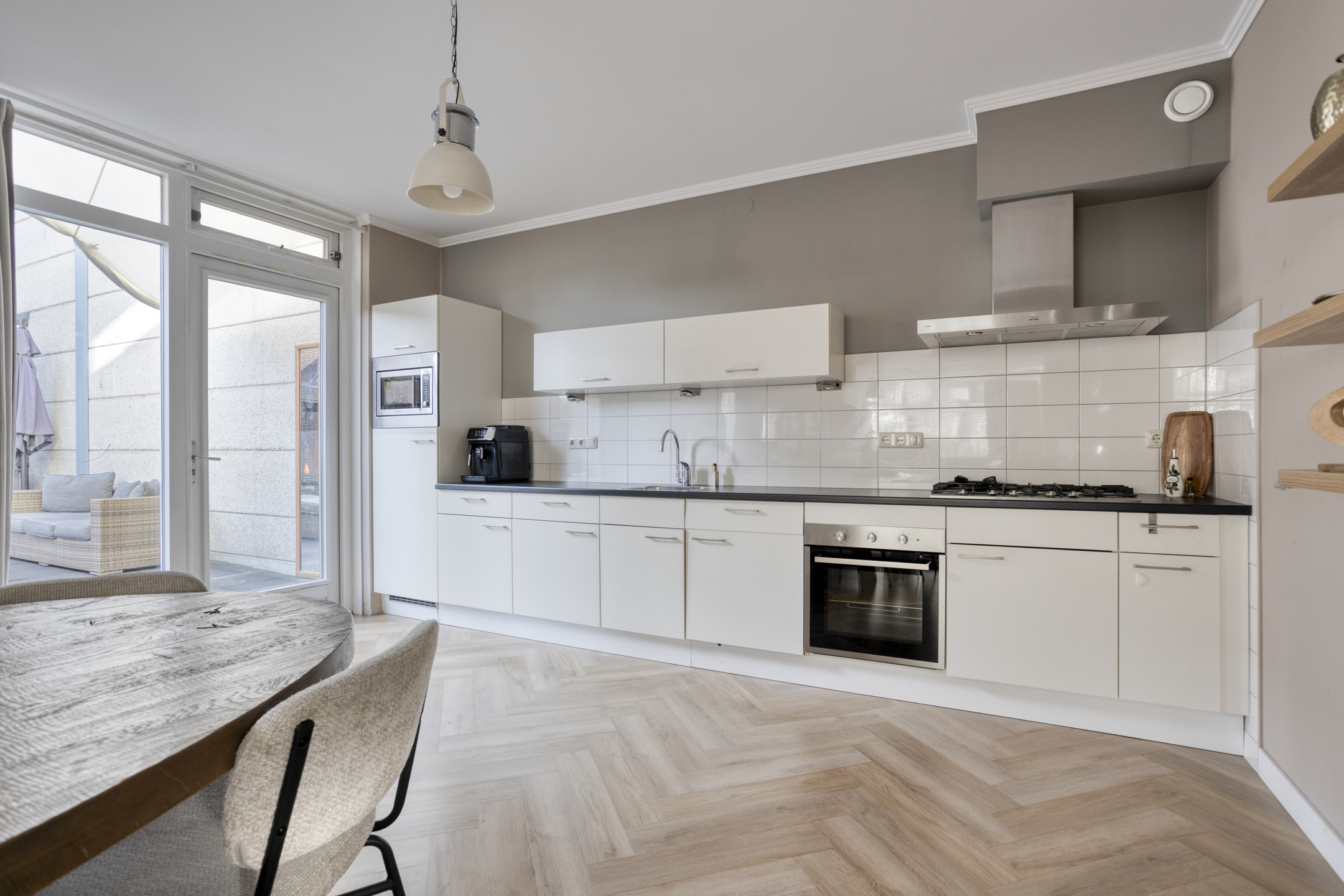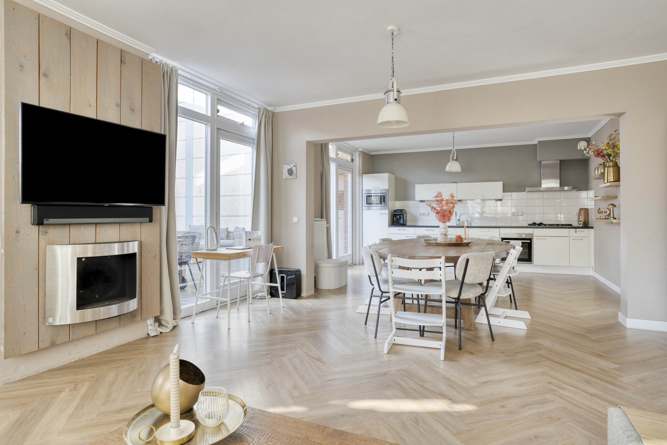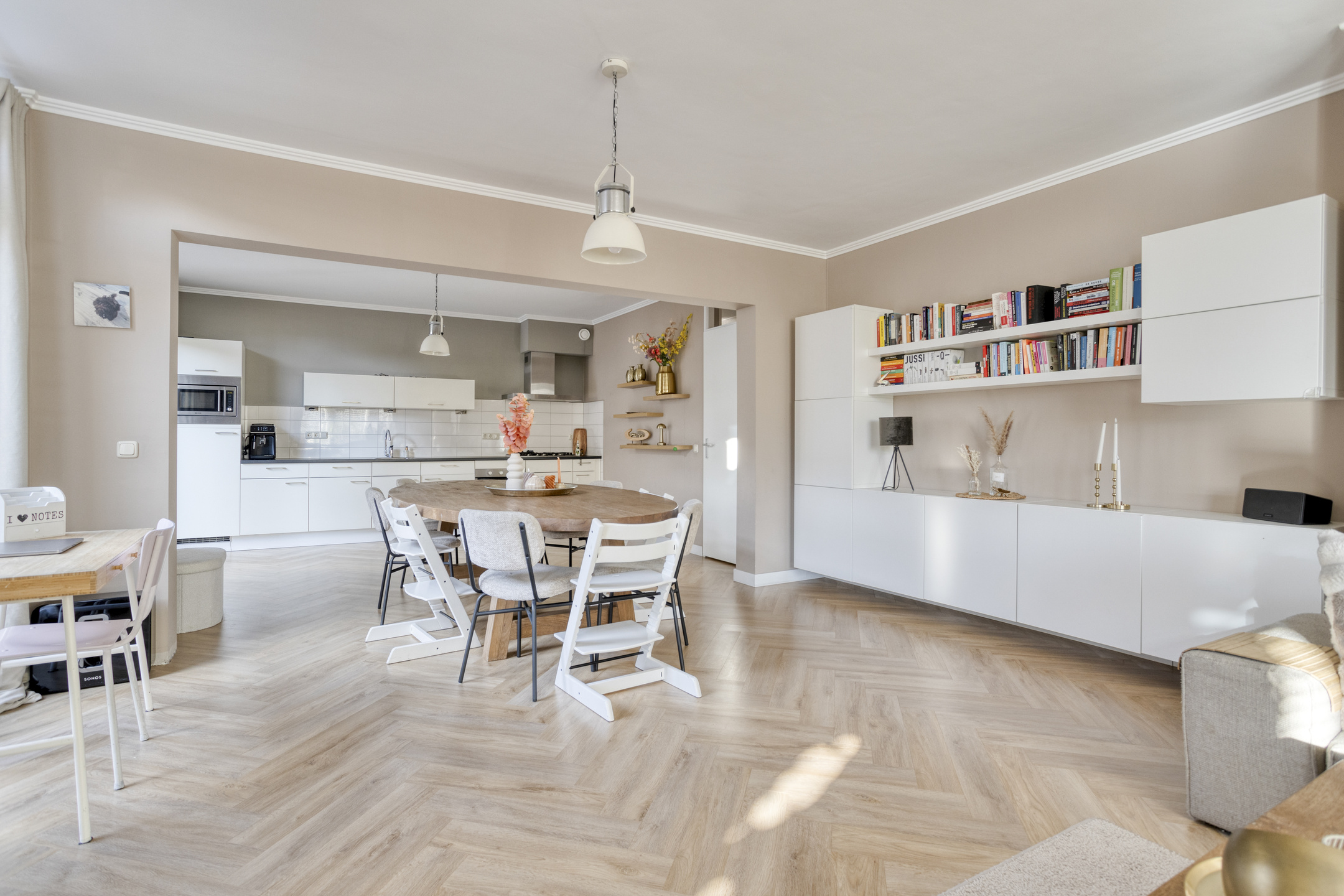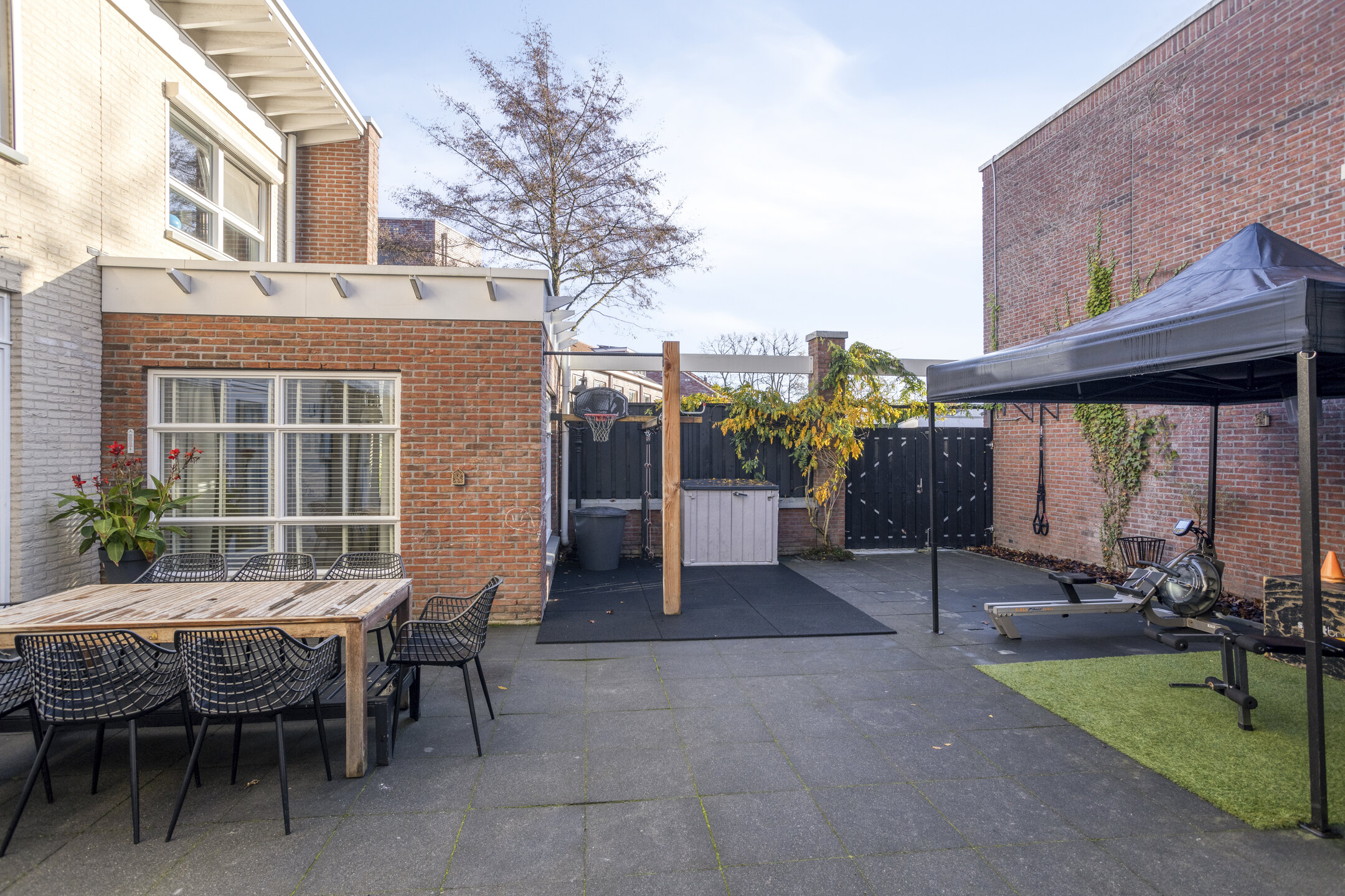 Op de begane grond betreed je de woning via een ruime hal met meterkast, trapopgang en trapkast. Het toilet is voorzien van een fonteintje. De bijkeuken biedt plaats voor witgoed, een elektrische boiler en de CV-ketel. De woonkeuken is voorzien van een complete inbouwkeuken en heeft een deur naar de royale achtertuin. De zeer ruime en lichte woonkamer vormt het hart van de woning en biedt volop ruimte voor gezin en ontspanning.