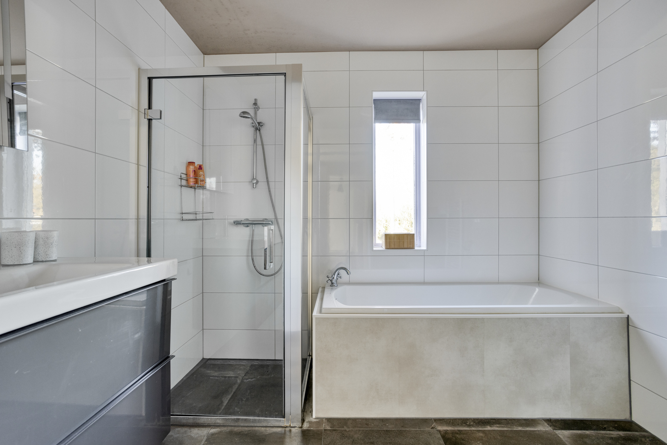 Op de eerste verdieping vind je een overloop met vaste kast en vier slaapkamers, die recent opnieuw zijn ingedeeld. De moderne badkamer is uitgerust met een ligbad, inloopdouche en een hangend toilet.