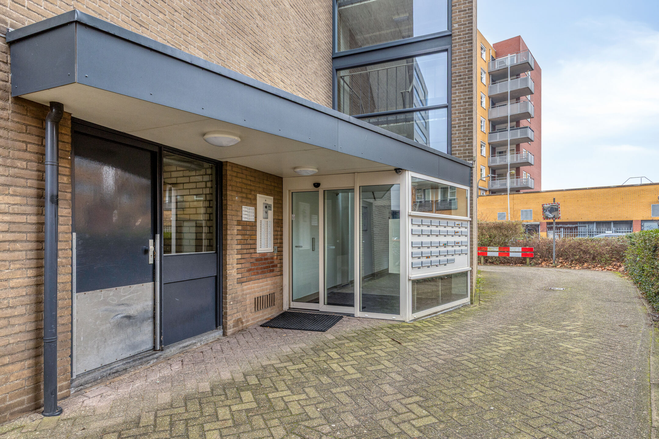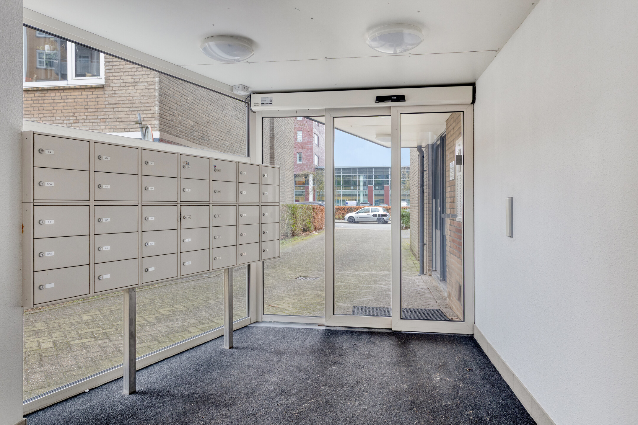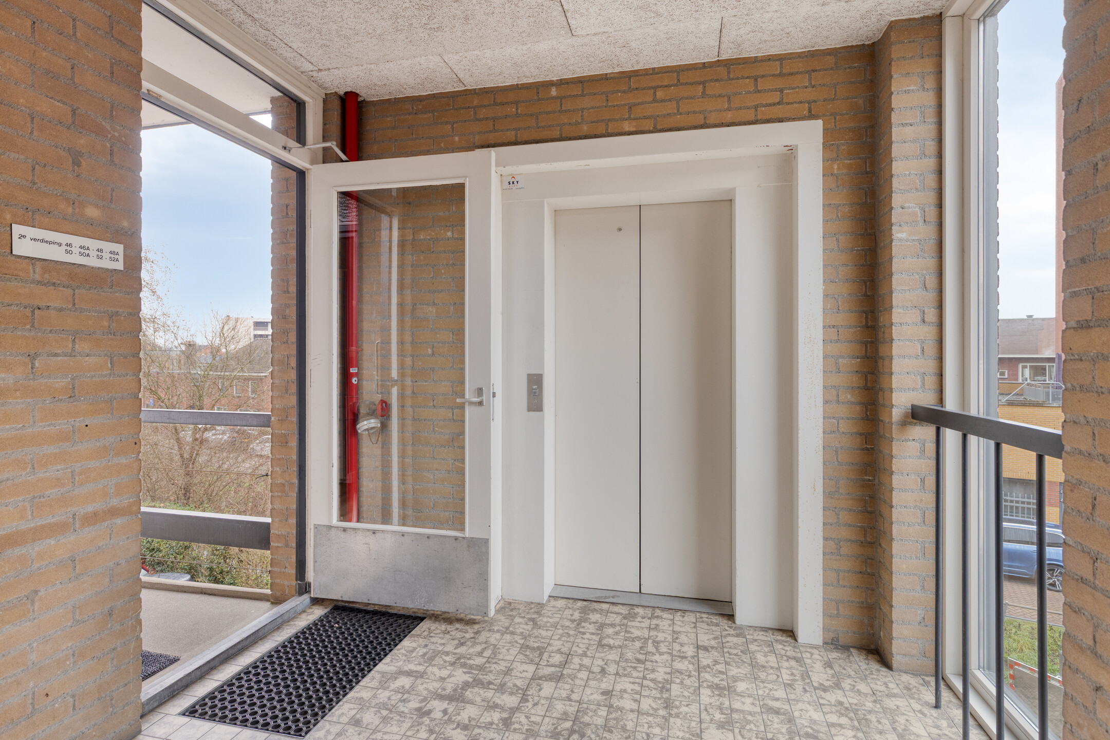 Het complex beschikt over een afgesloten portiek met centrale hal, brievenbussen en trapopgang met liftinstallatie, wat het geheel veilig en toegankelijk maakt.
