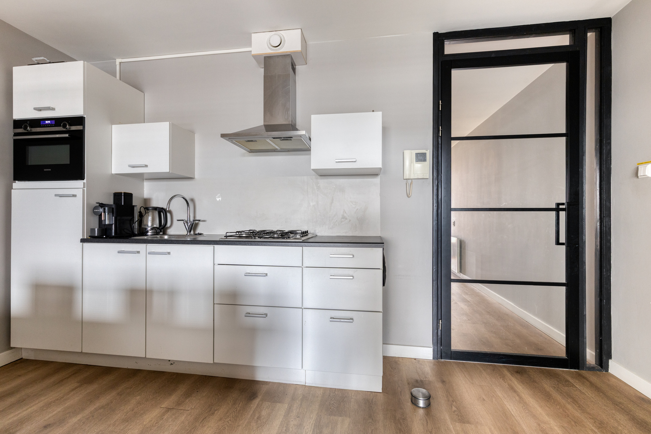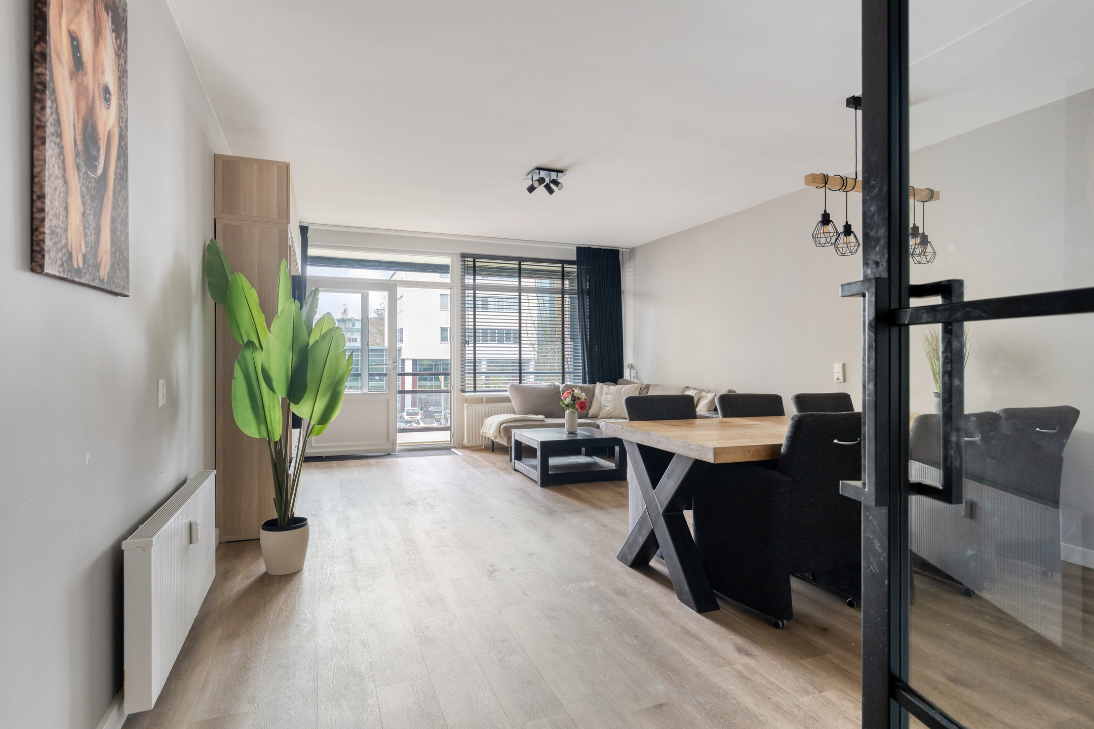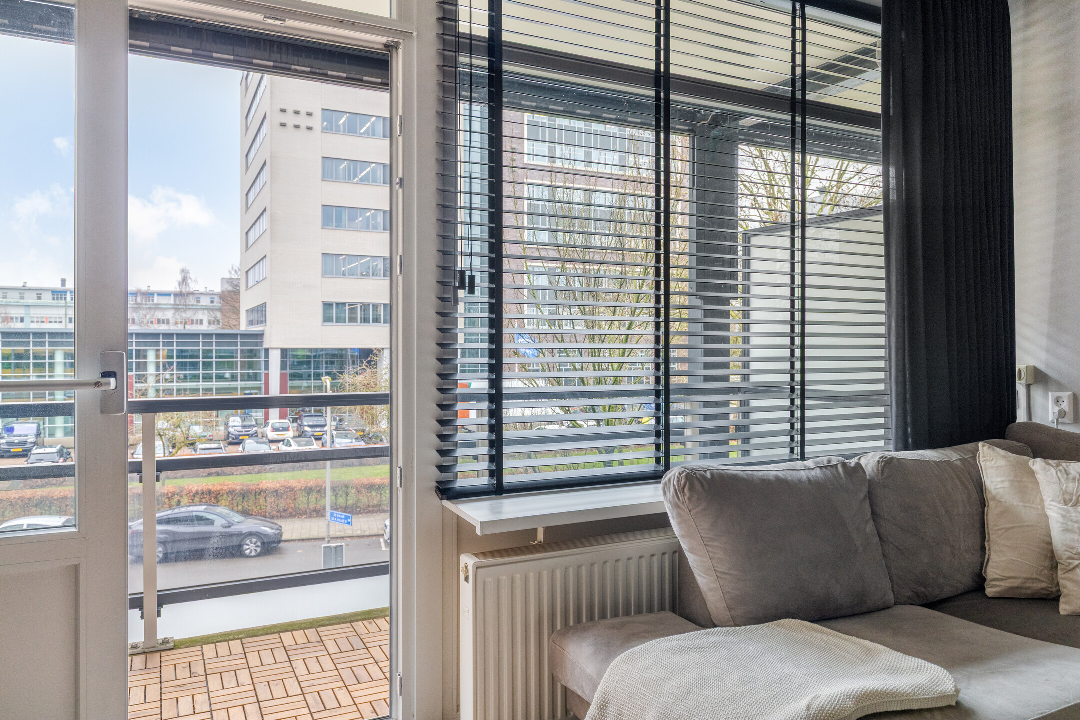 Het appartement beschikt over een lichte woonkamer met open keuken, voorzien van een moderne inbouwkeuken met diverse apparatuur. Vanuit de woonkamer stap je zo het ruime balkon op, waar je heerlijk kunt genieten van het uitzicht over het centrum. De inpandige badkamer is netjes en volledig uitgevoerd, met wastafelmeubel, staand toilet, douchecabine en witgoedaansluiting.
