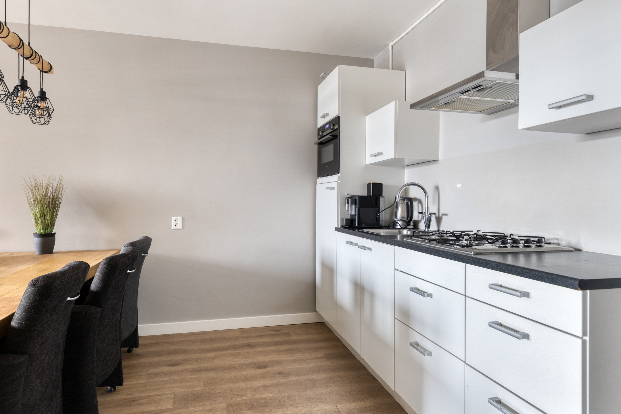 - Lichte woonkamer met open keuken en inbouwapparatuur.